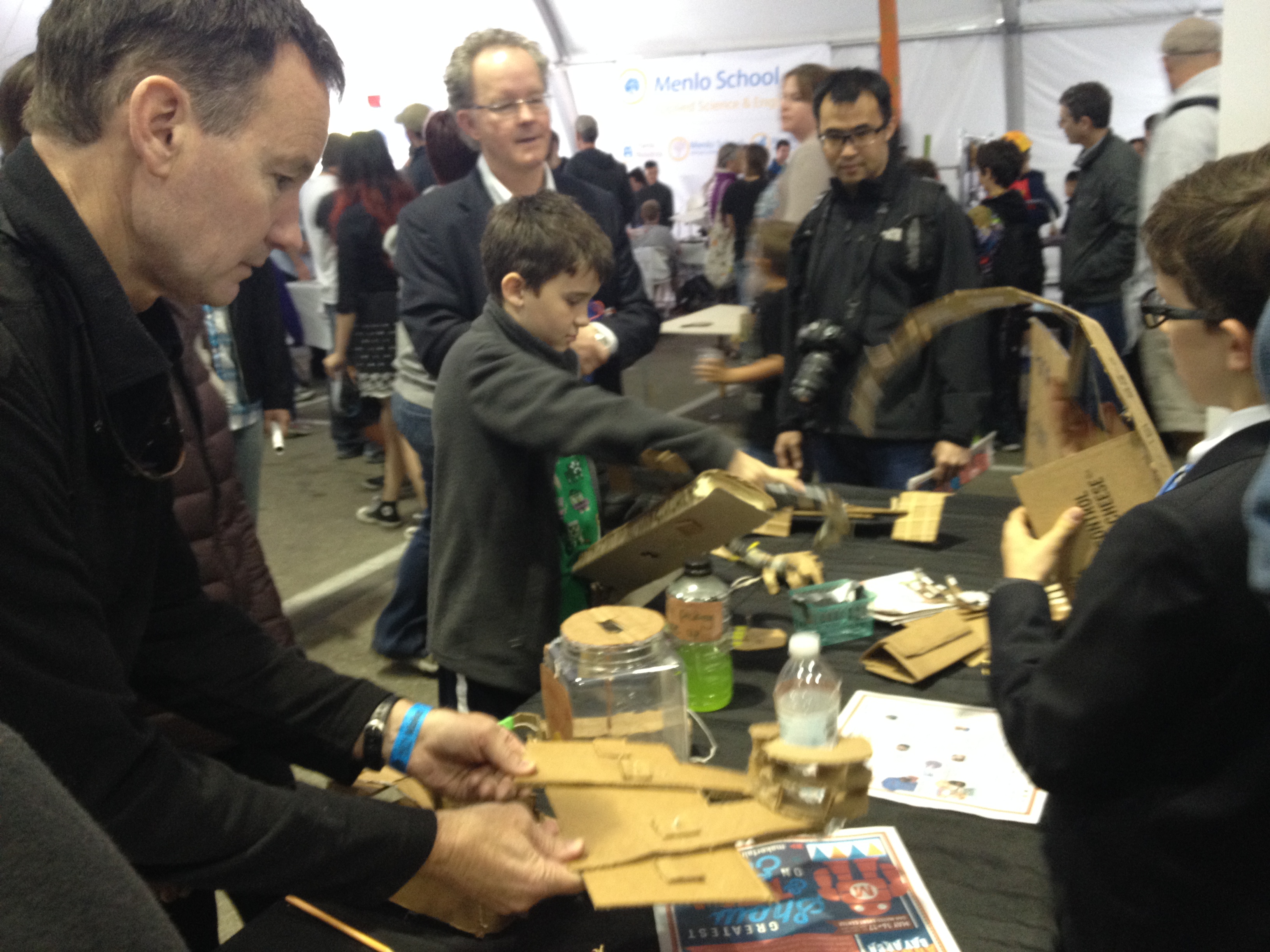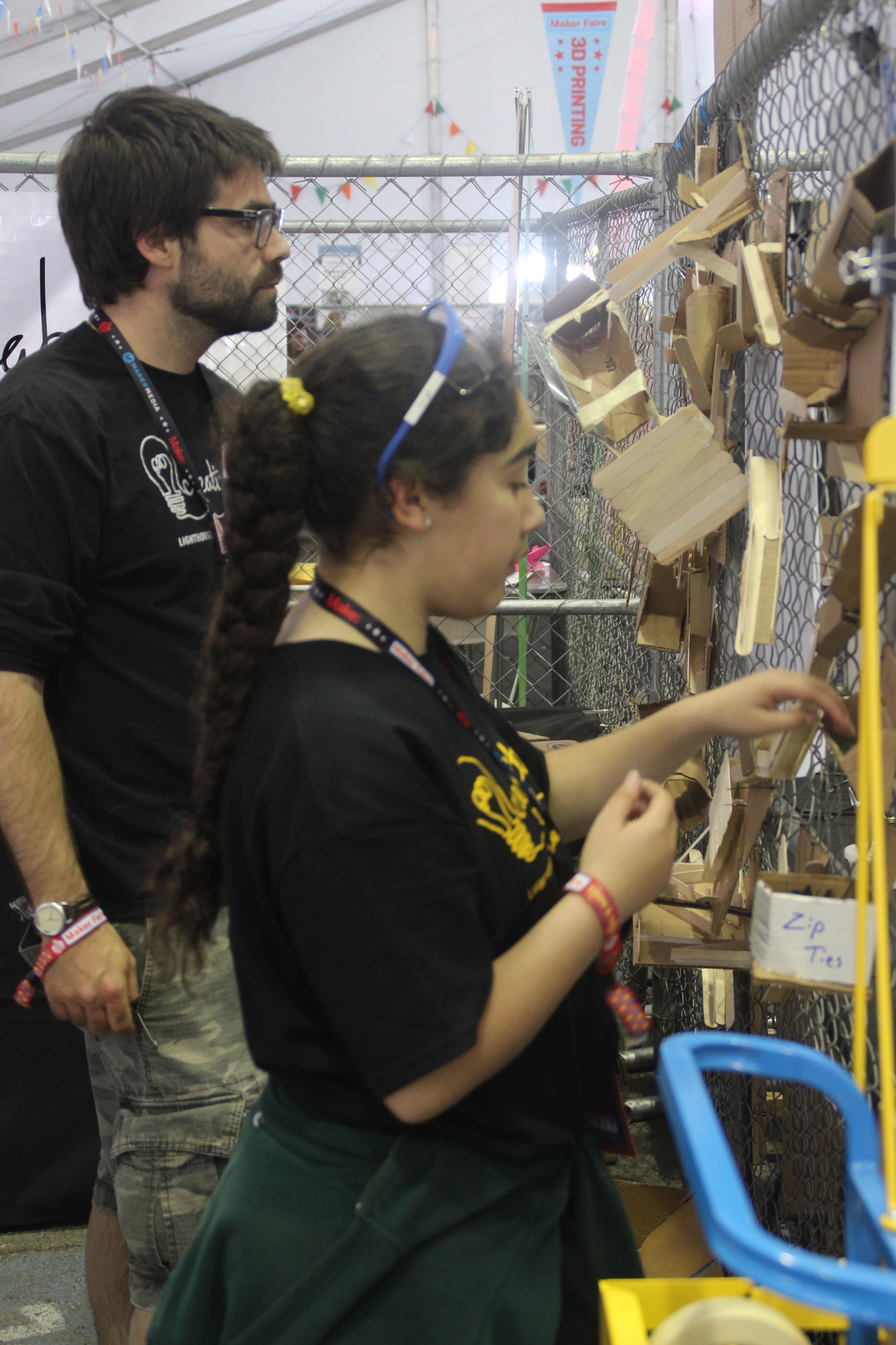 Frankly, our high school students in the making elective struggled to get their projects done in time for Maker Faire this year, which caused more than a little anxiety. We used it as an opportunity to let visitors of our booth see the making in progress. One group finally finished their rocking chair at Maker Faire (and got some praise from other nearby makers), and our guys working on the Van de Graaff generator put in some extra work at the Faire, too. So it worked out, and the lesson to take away from this is 1) make your students get their projects done earlier, and 2) when they inevitably don’t, use it to your advantage.