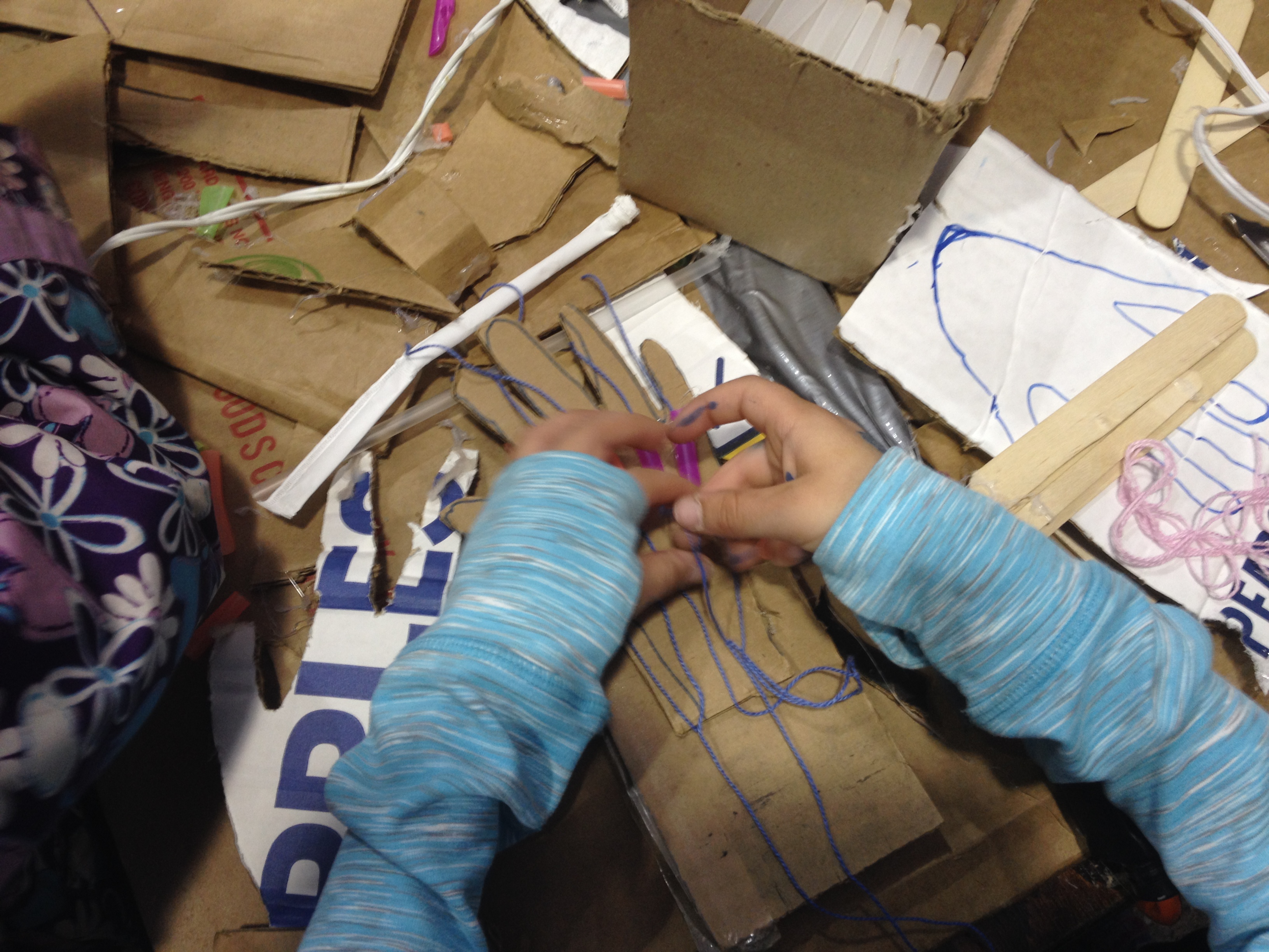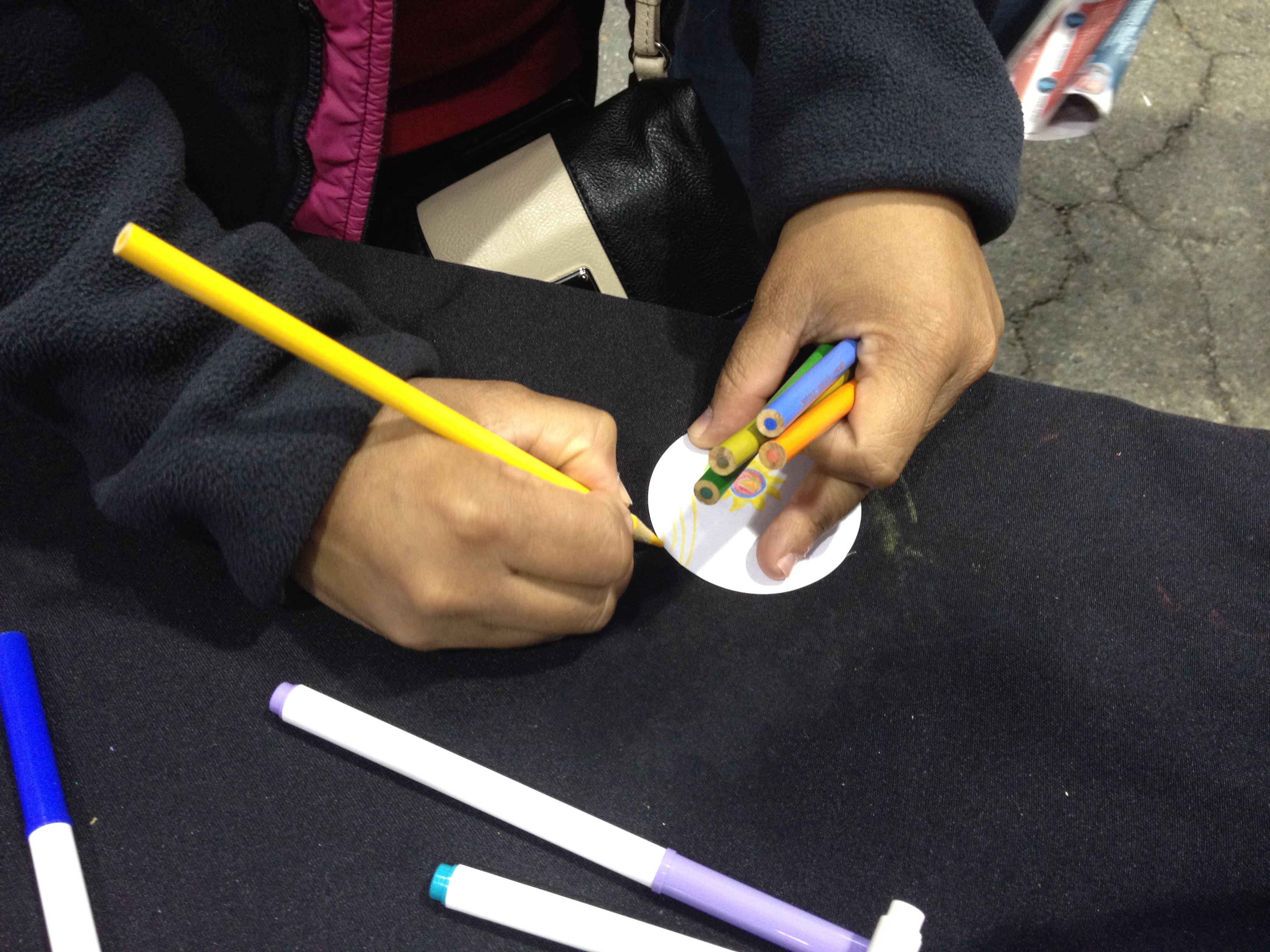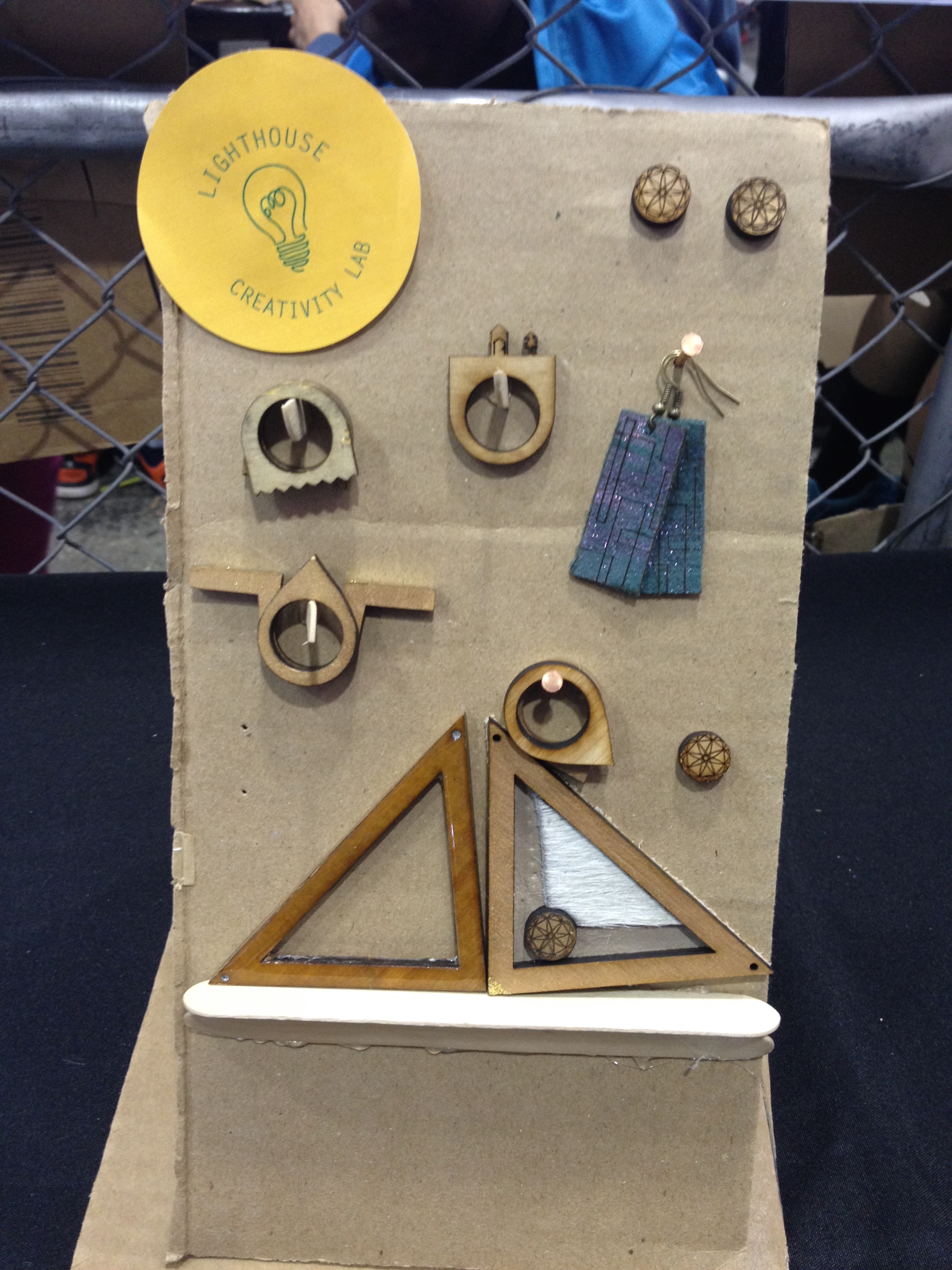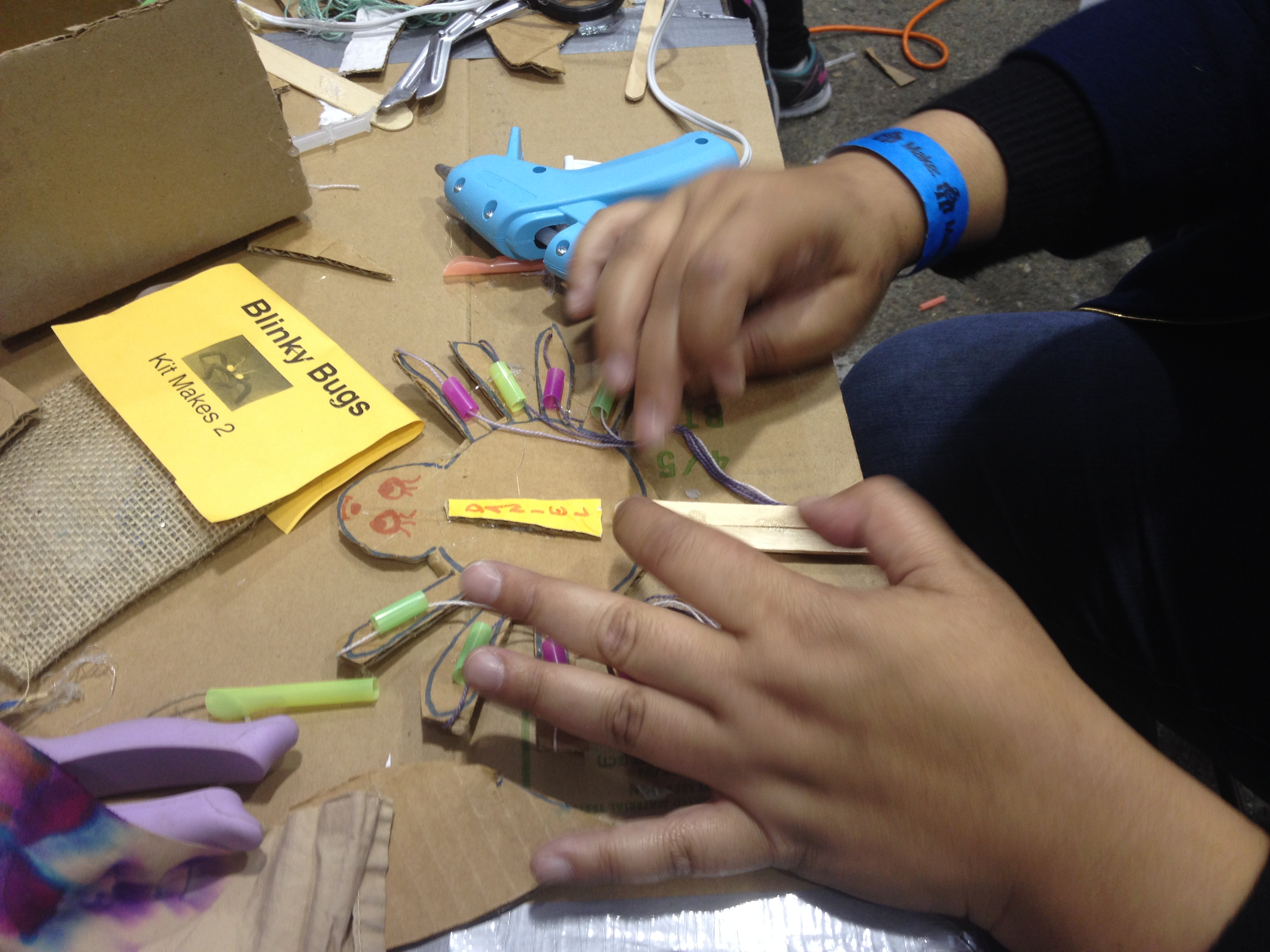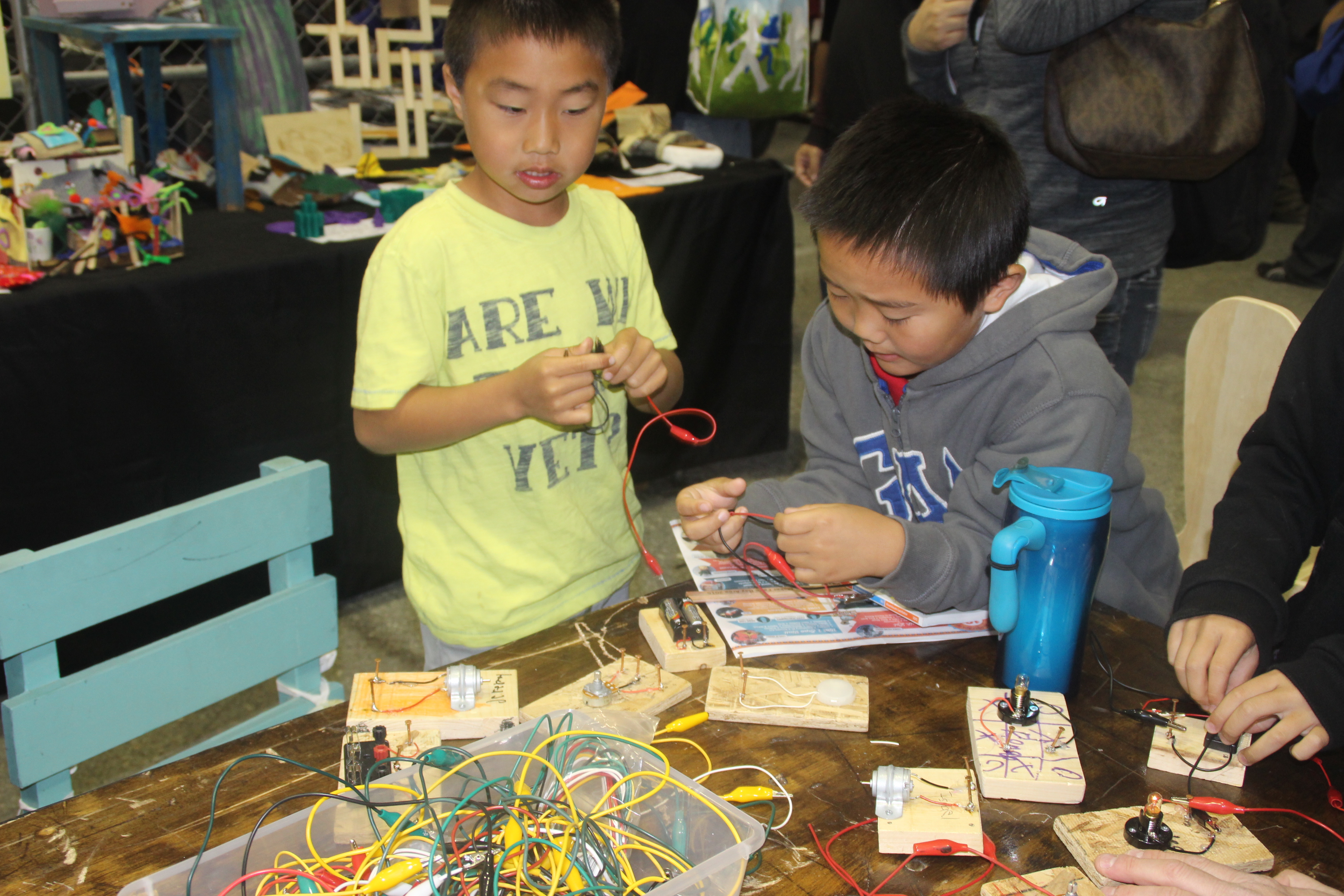 Our goal was both to show off the hard work and creativity that our students have put into their making projects over the past several months, as well as get new makers engaged in the fun themselves. From 10:00 am–6:00 pm, our students got to be the teachers as they helped participants of all ages join us in making marble mazes, cardboard hands, buttons, and circuits:
