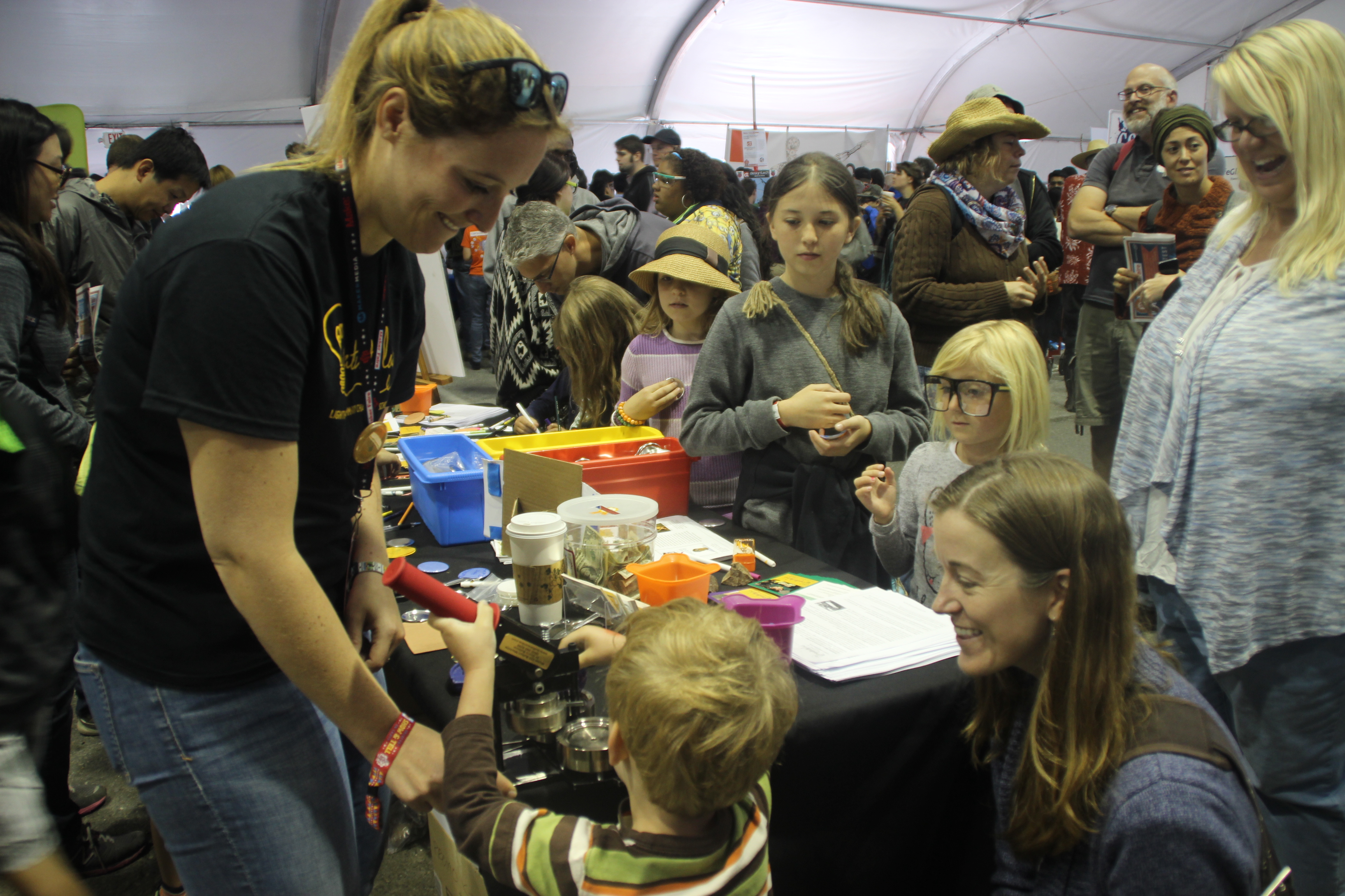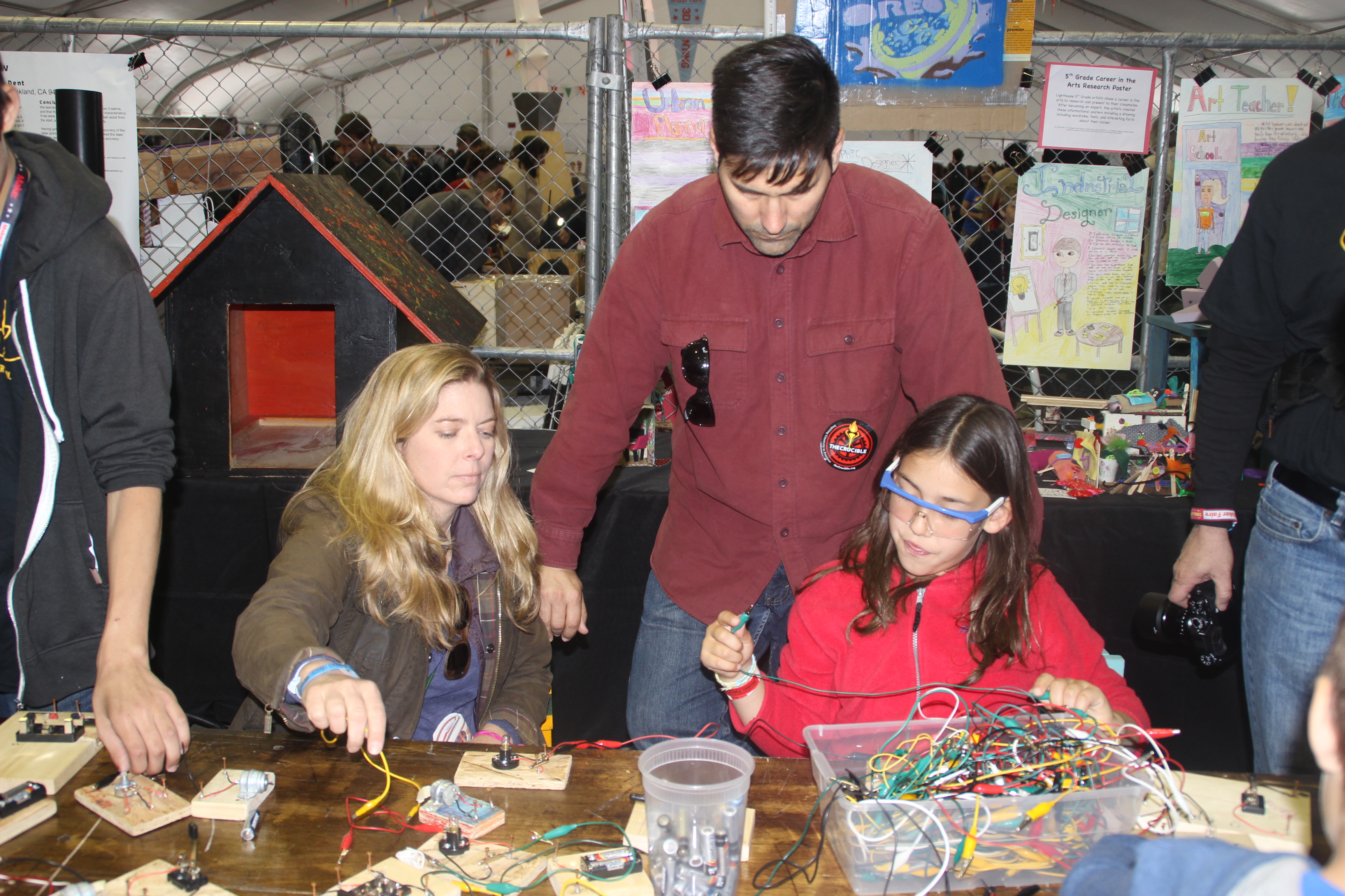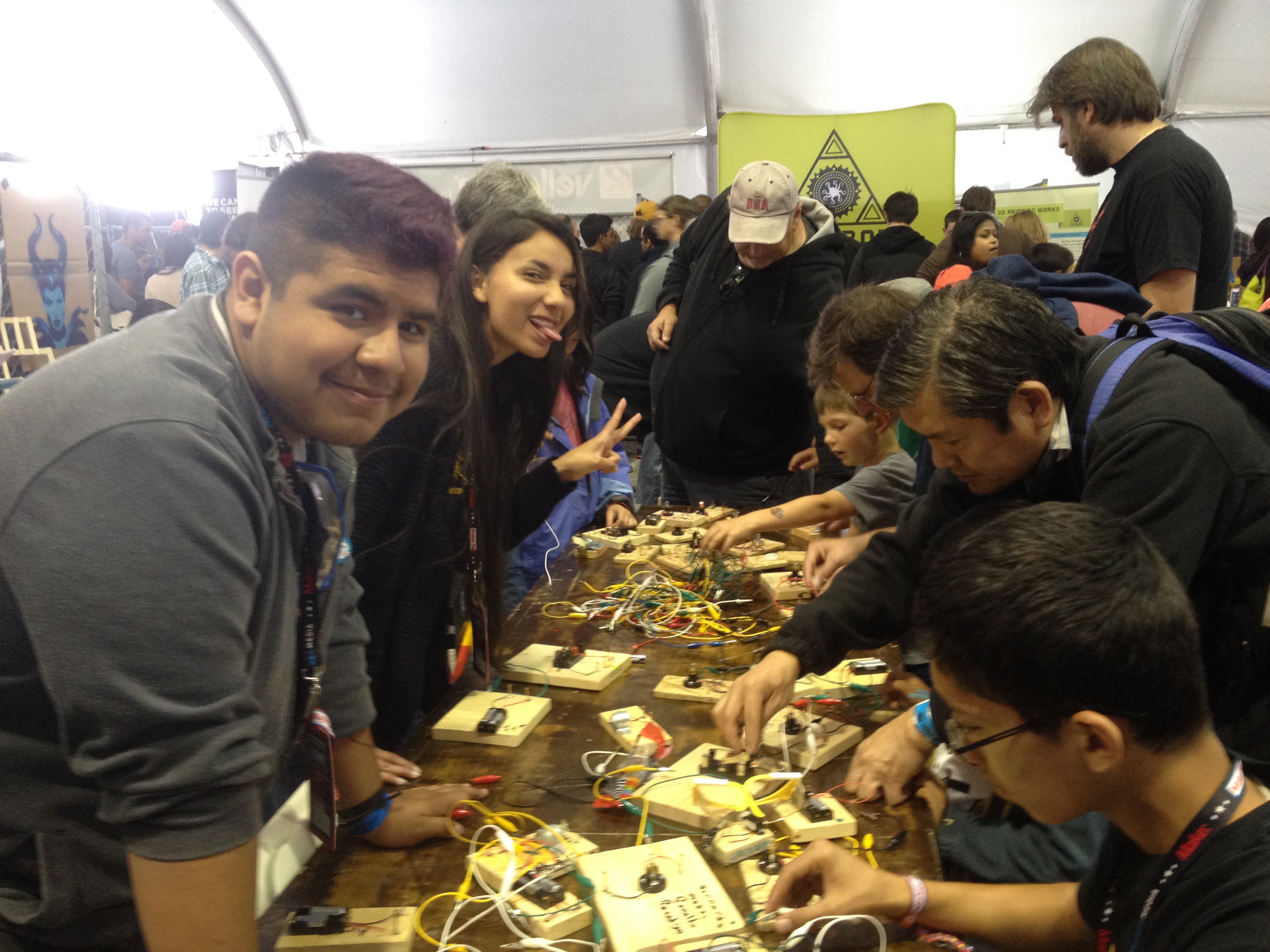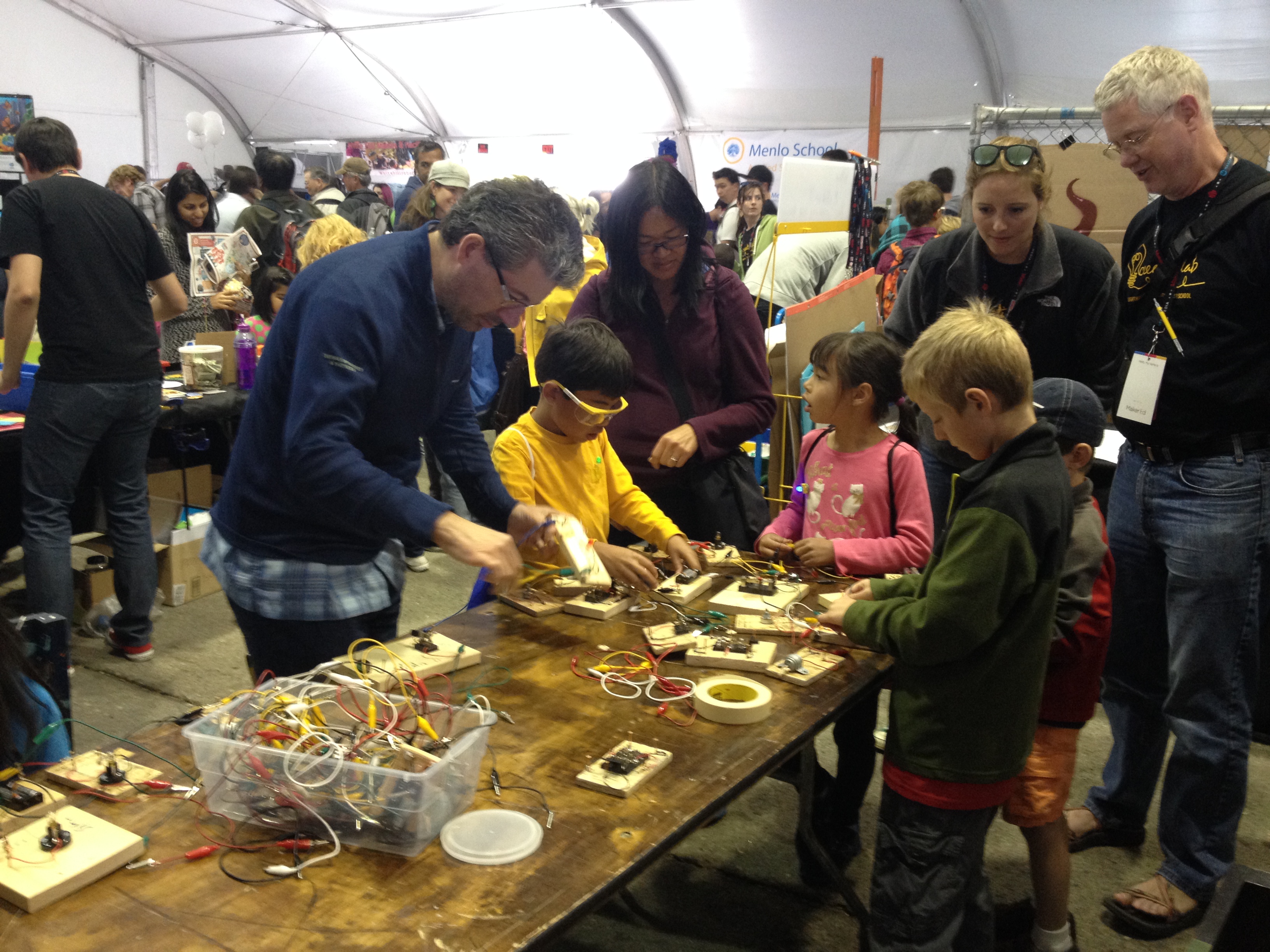 For the fifth year in a row, students and teachers represented the Creativity Lab at Maker Faire with their own interactive making sessions and project displays. This year, we had roughly thirty students—grades sixth through twelfth (and one kindergartner, for good measure)—helping with our booth over three full days.