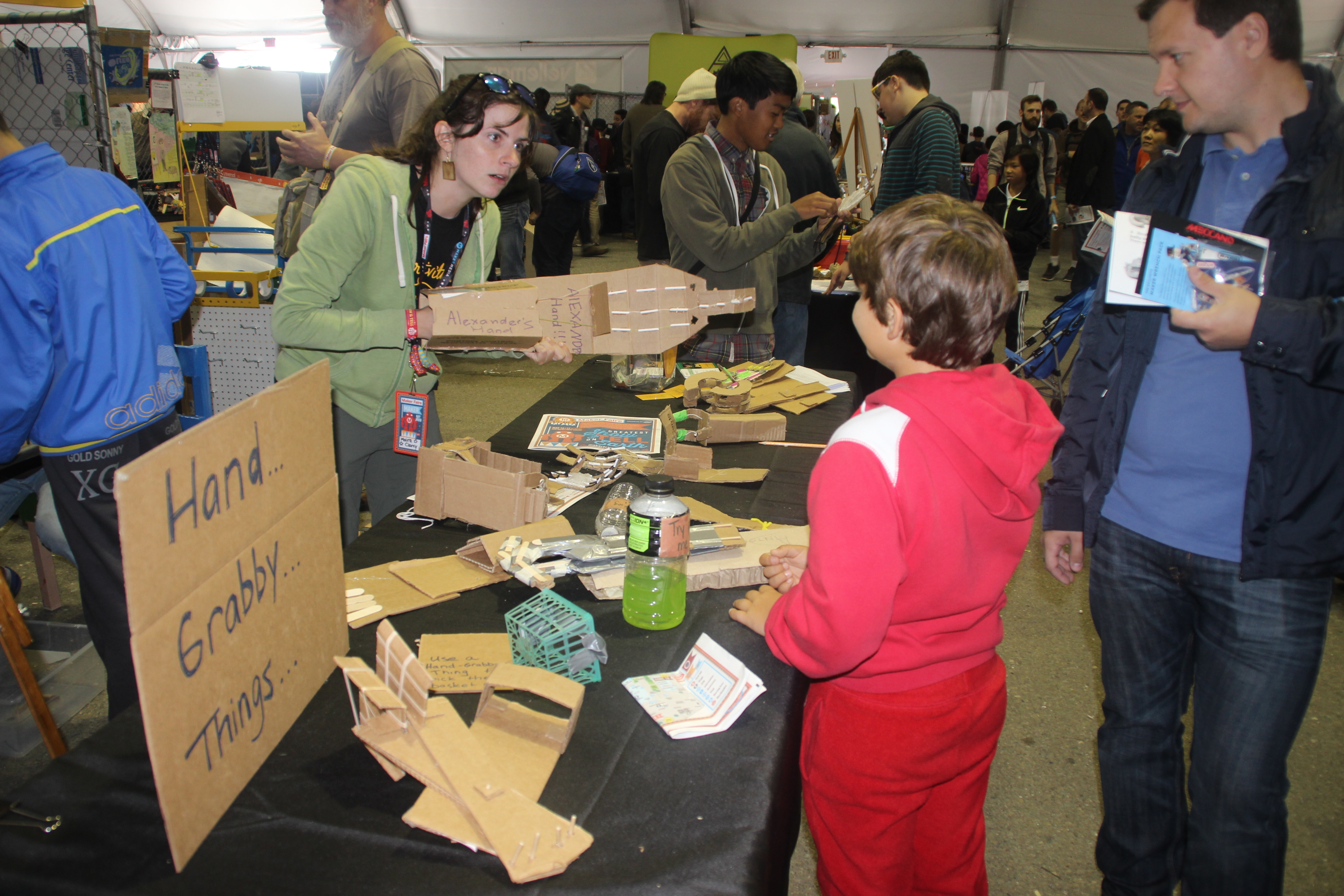 We’d intended all along to let participants have a go at making their own hands as one of our activities. (You may recall my post on this project just a few weeks back.) But, before we even got around to setting this activity up, passersby who saw our display of hands got excited enough over the project that our marble machine station naturally turned into a hand-making station all by itself. Hand-making was probably one of the biggest hits of our entire booth (and I’ll just go ahead and be bold enough to say it was one of the biggest hits of the entire Maker Faire).