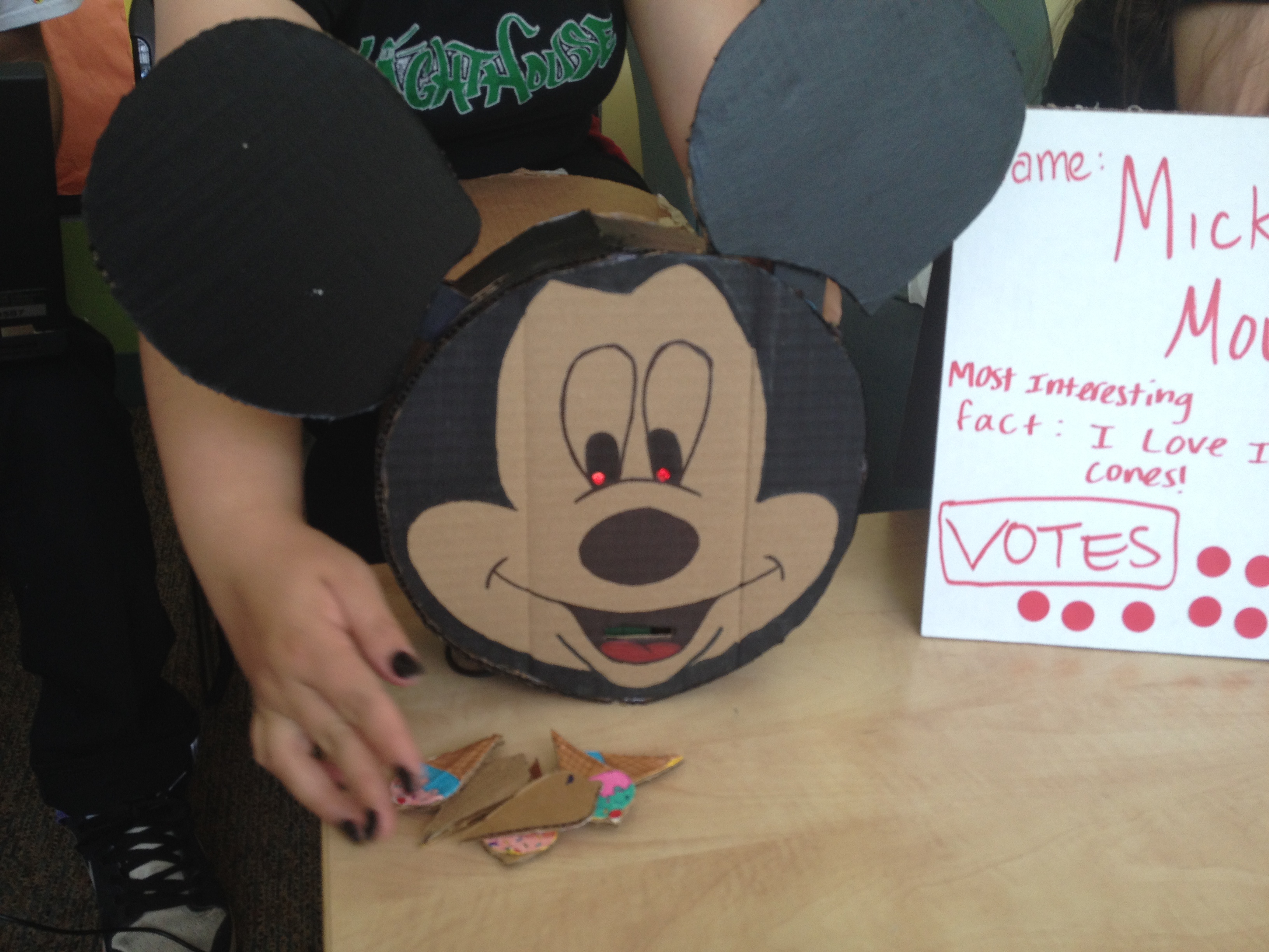 A: We would probably make his shape more cube-like. Trying to use cardboard to make cylindrical and spherical shapes was really hard.