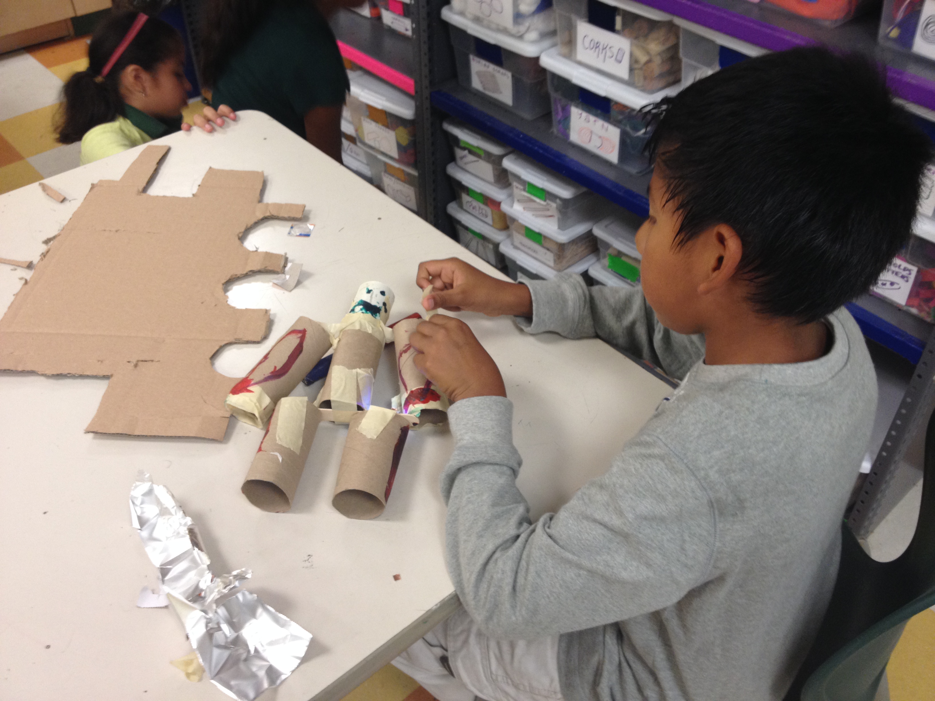 Last week, our summer makers built robots. Several students used what they had learned from building cars to give their robots moving parts (by incorporating axles). Once their robots were built, they capped their projects by adding LEDs and motors to their designs. Check out the pictures, and, as always, leave a comment!