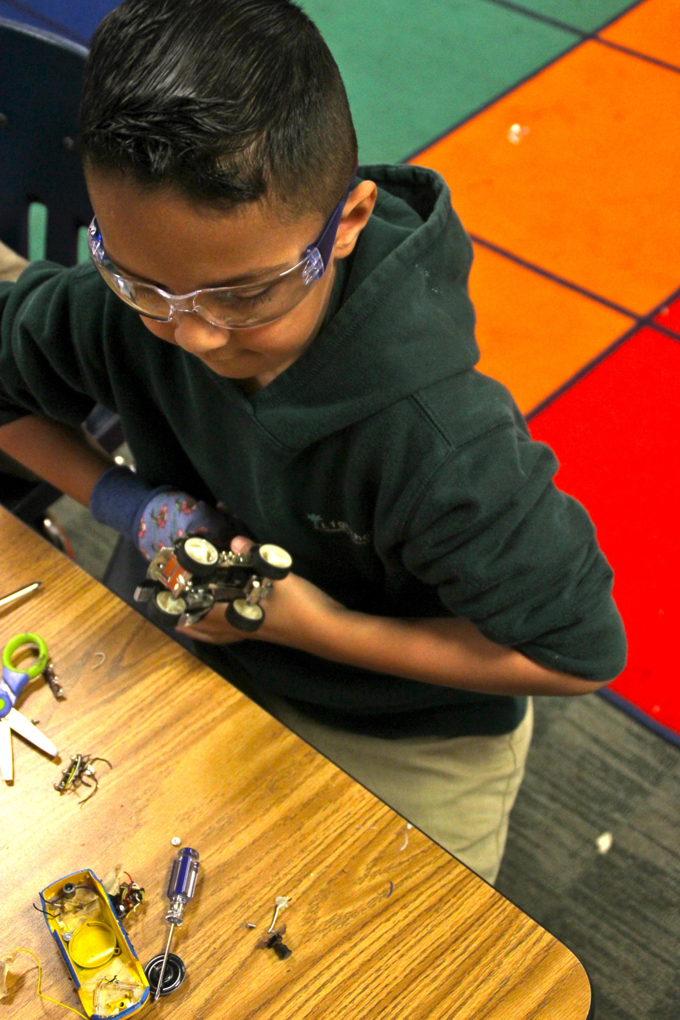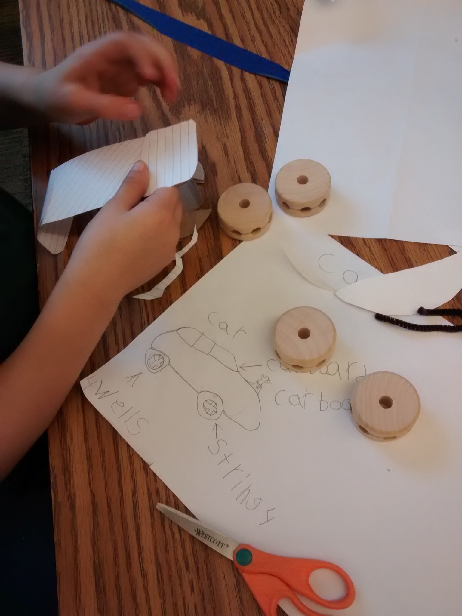 Here they are taking apart toy cars in class, after which they explored the parts and purposes of their toys.