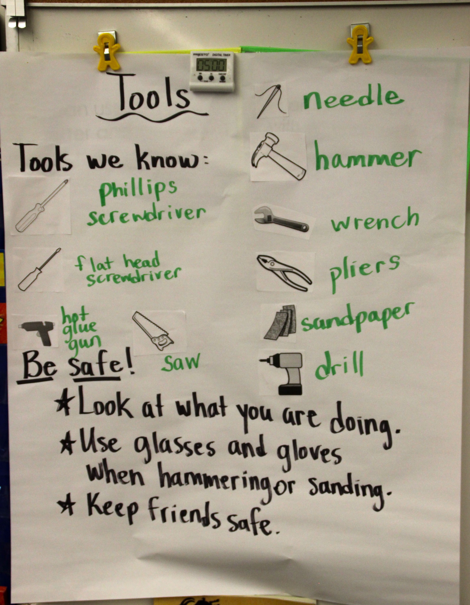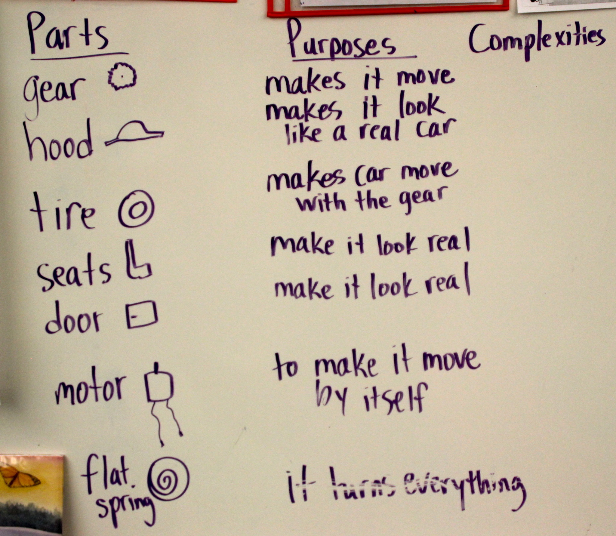 They started the take-apart activity using Parts, Purposes, Complexities to think about how toys work (and safety!) through class discussion…